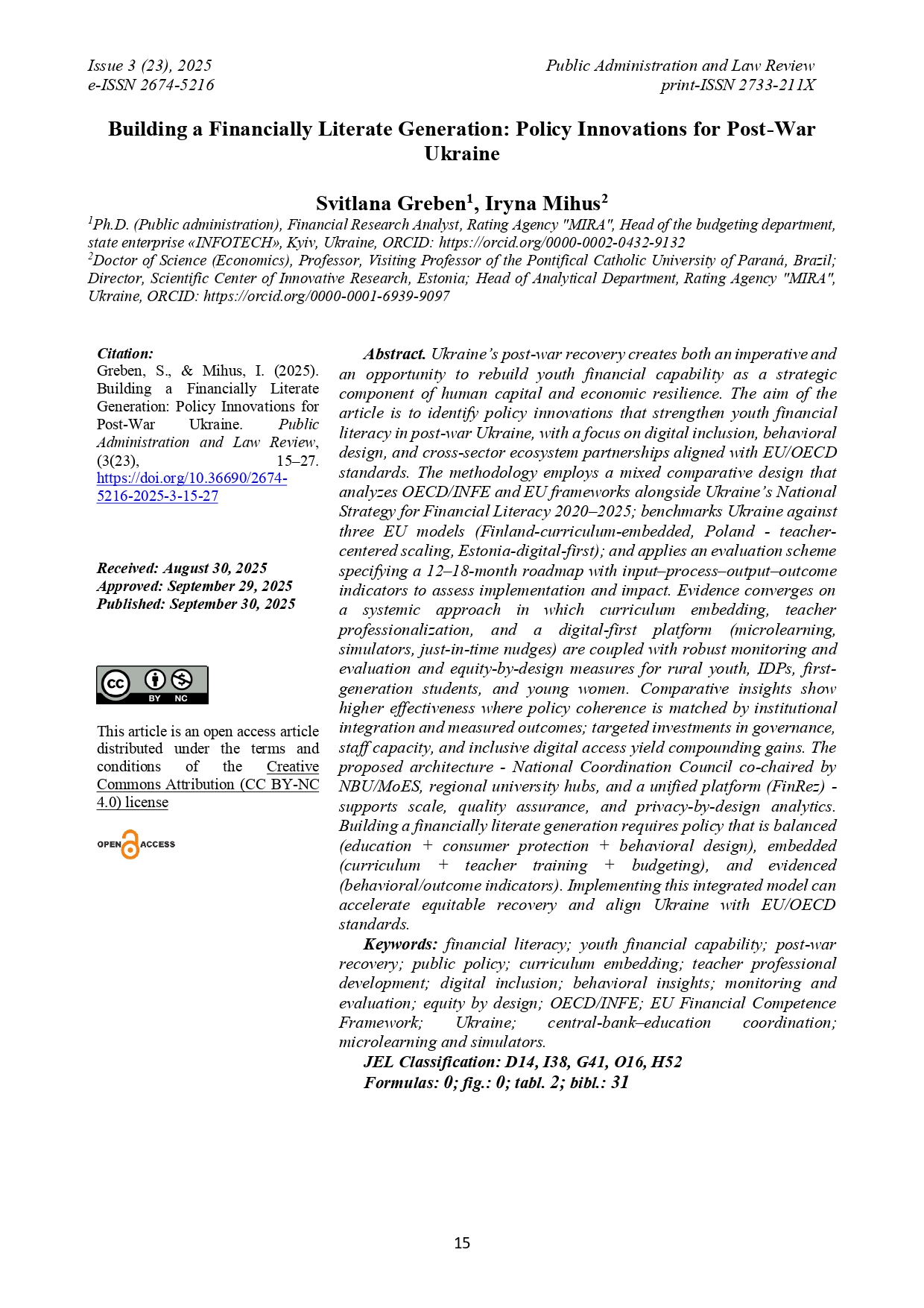 No. 3(23) (2025): Public Administration and Law Review