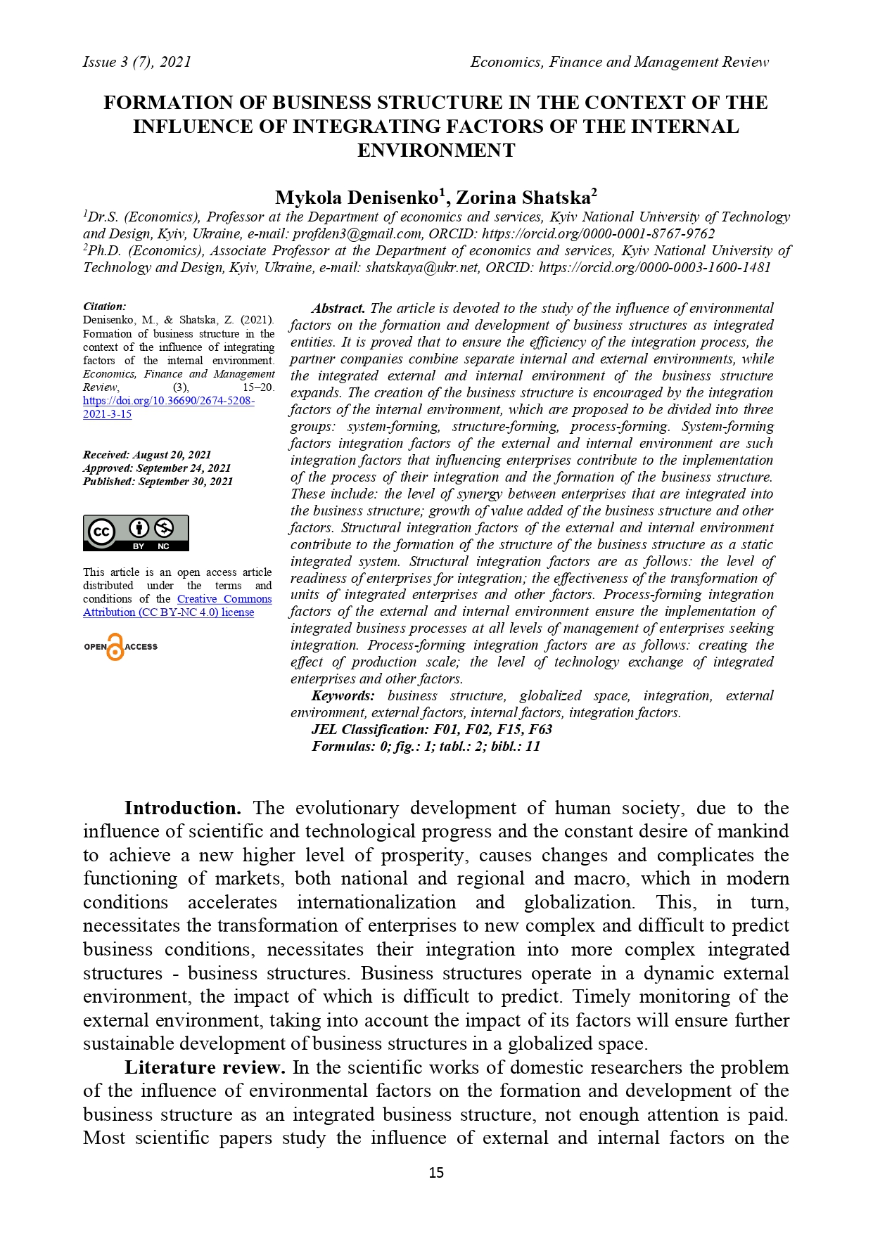Shatska, Z. Ya. (2020). Influence of integration factors of macroenvironment in the context of formation of business structures. Entrepreneurship and innovation. Vol. 13. pp. 67-74. doi: https://doi.org/10.37320/2415-3583/13.13