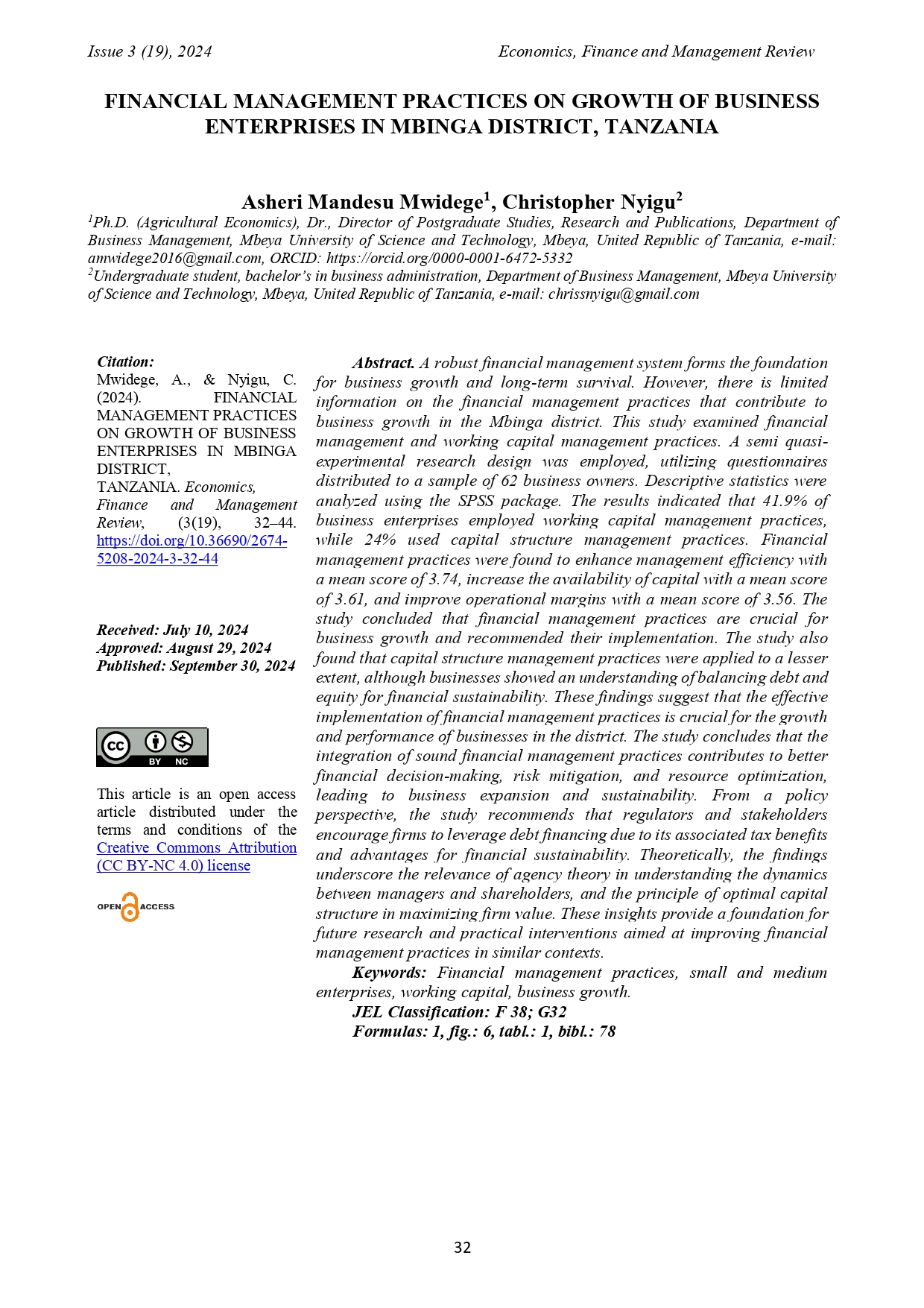 FINANCIAL MANAGEMENT PRACTICES ON GROWTH OF BUSINESS ENTERPRISES IN MBINGA DISTRICT, TANZANIA